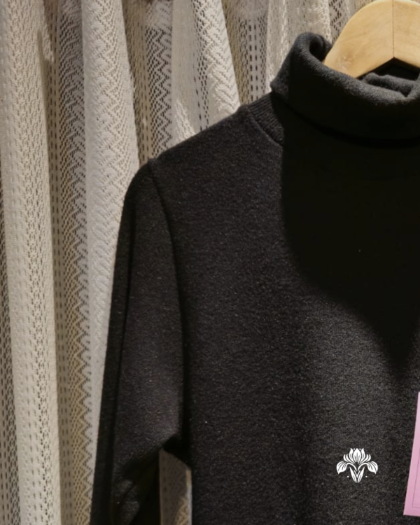 Suéter polera de lanilla color negro, de textura suave y tejido elastizado que se adapta al cuerpo con comodidad. Perfecto para los días fríos de otoño e invierno.