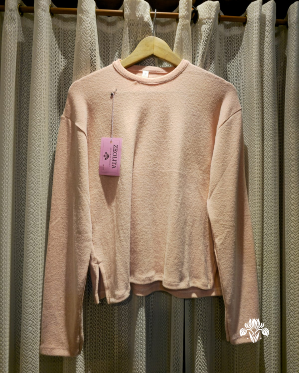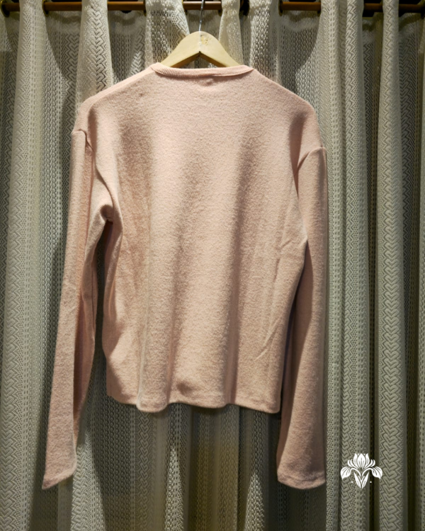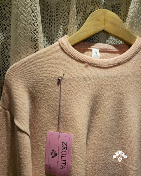 Suéter de cuello redondo rosa, de textura suave y tejido elastizado que se adapta al cuerpo con comodidad. Perfecto para los días fríos de otoño e invierno, es una prenda versátil y elegante, ideal para combinar con cualquier look.