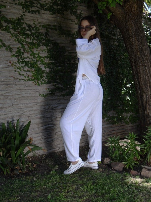 Pantalón estilo italiano de lino tiro medio alto con cintura elastizada y cordón no regulable, bolsillos en los laterales. Ideal para climas cálidos tales como primavera y verano.
